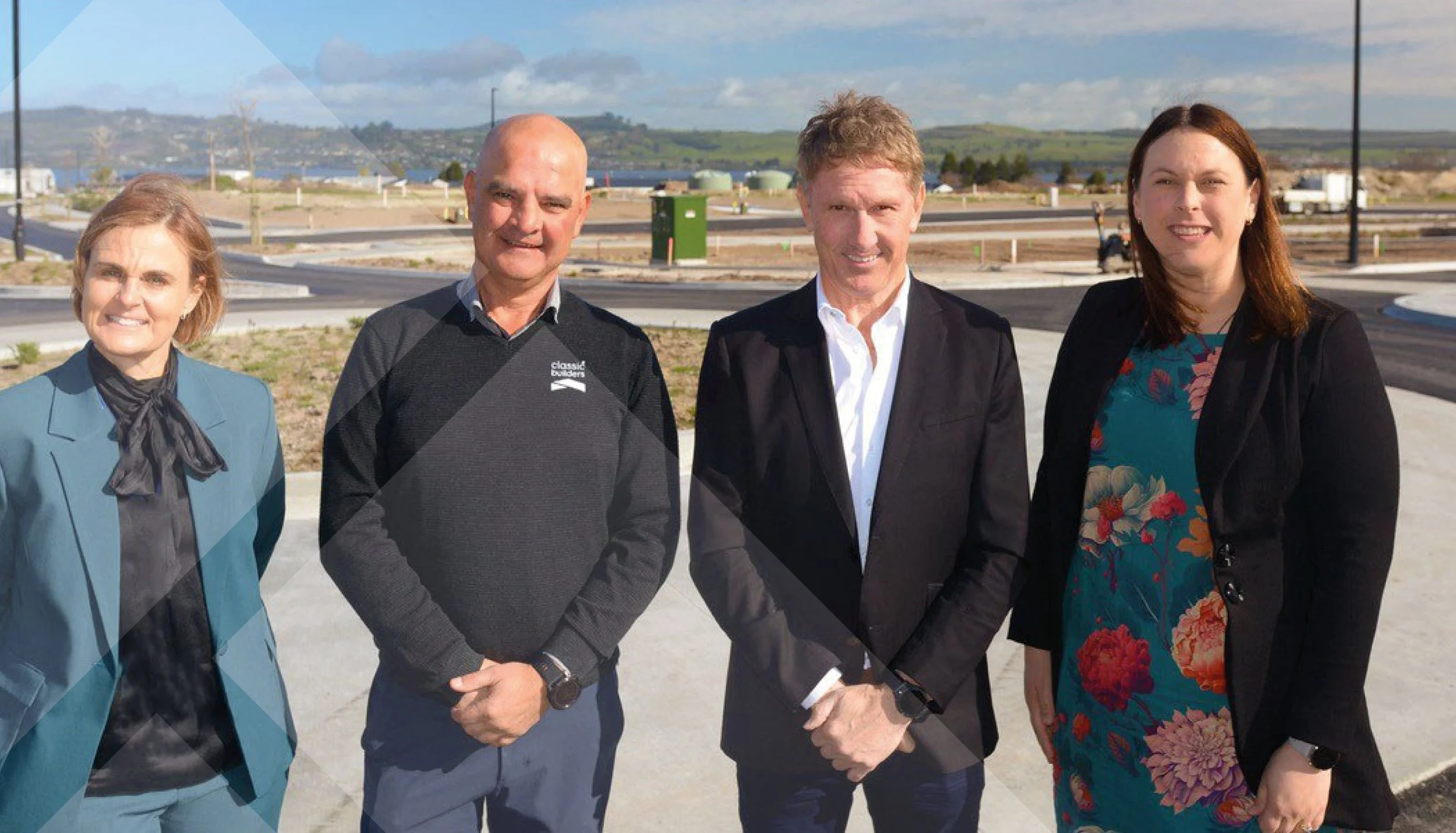 Pictured from left: Taupō District Council chief executive Julie Gardyne, Paul Taylor, owner of Classic Builders, John Penny, owner of Penny Homes, and Sarah Matthews, Taupō District Council’s general manager organisation & performance.