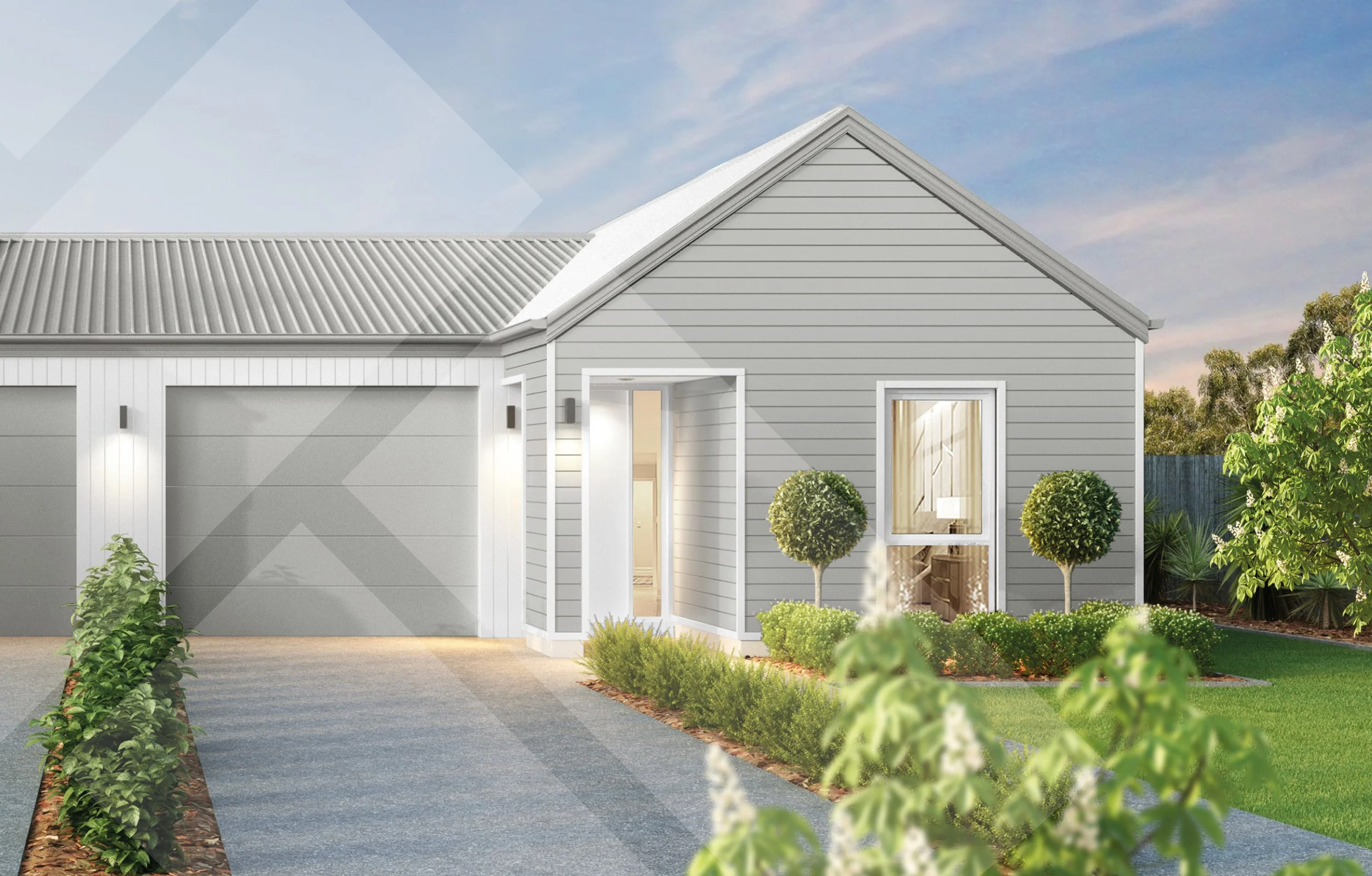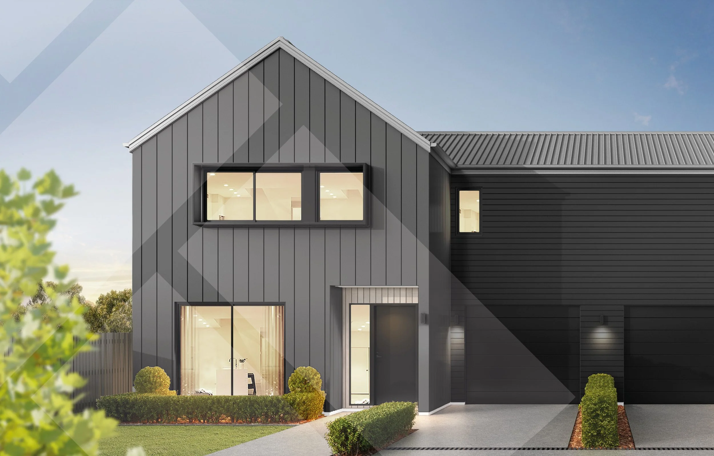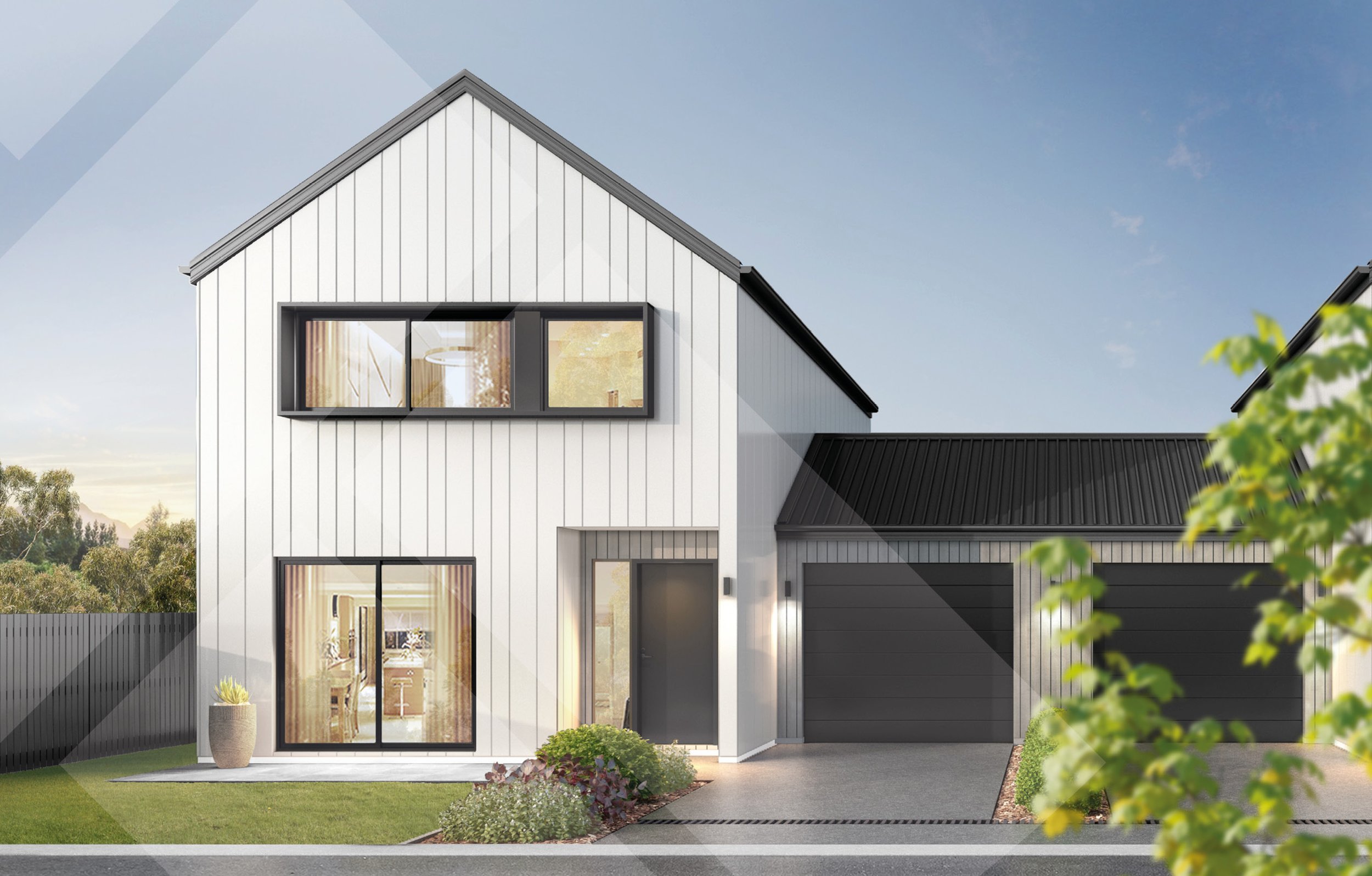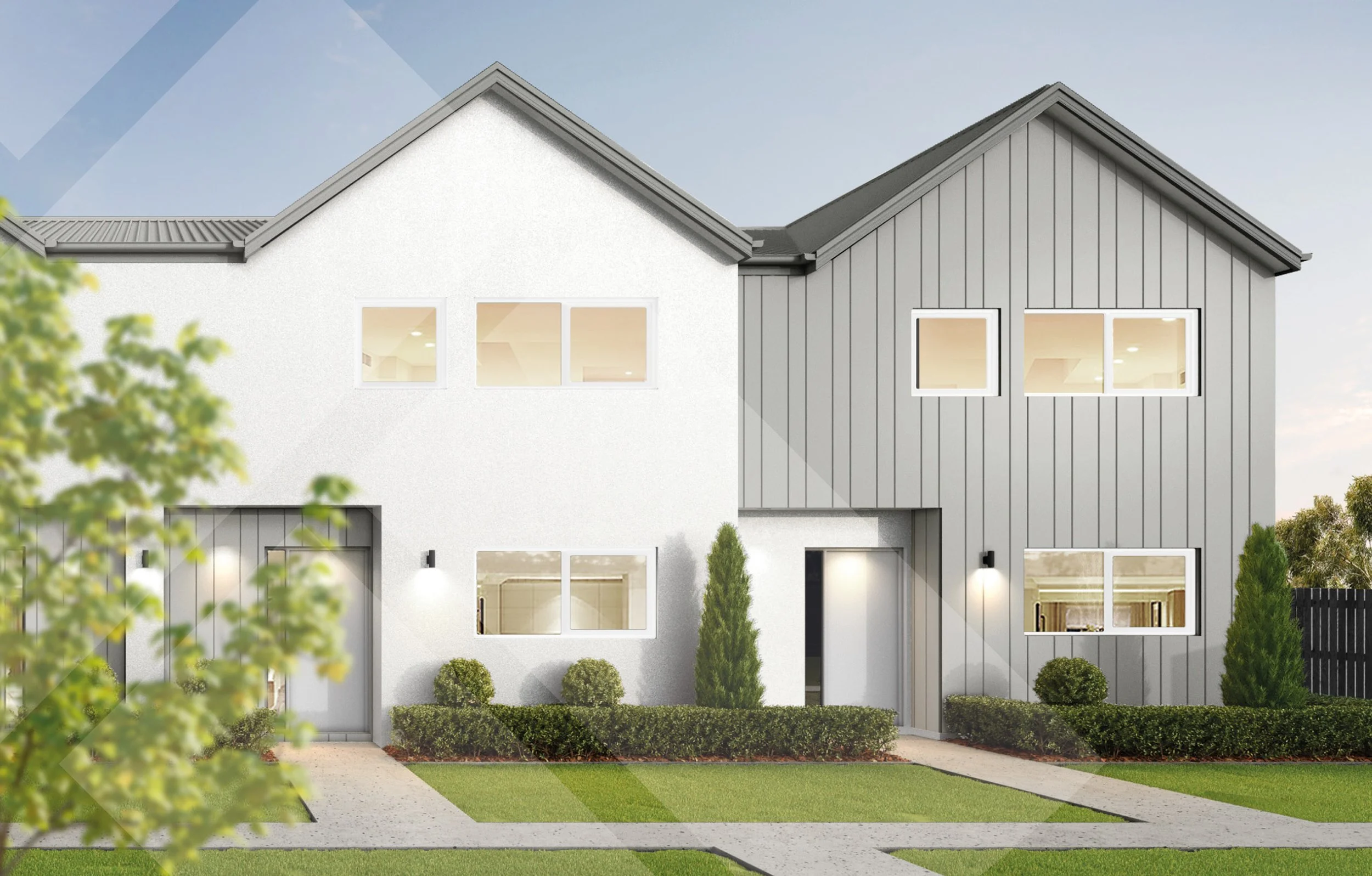 This 159m² two-storey corner duplex offers open-plan kitchen, dining and living spaces opening to the outdoors. Three upstairs bedrooms with full bathroom including a master with ensuite. Featuring Oblique and timber cladding with Colorsteel roofing, this gable-front design delivers timeless street appeal, natural warmth and low-maintenance living.