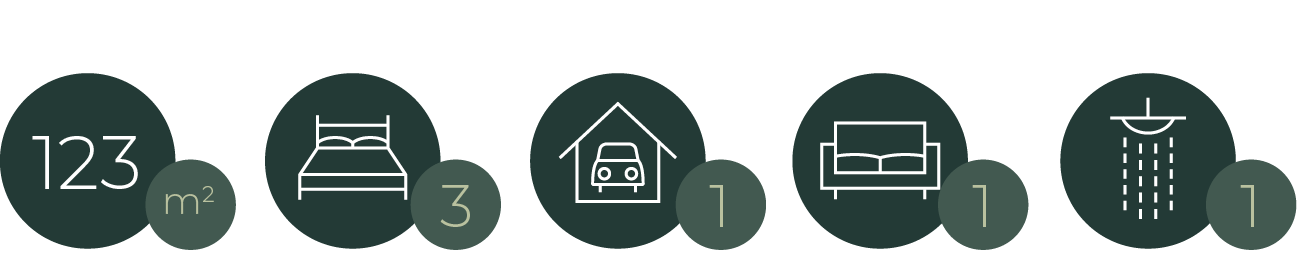 Positioned on the outer edges of the terraced collection, these stylish two-storey homes offer three bedrooms, full bathroom upstairs including a master with ensuite. Open-plan living downstairs flows effortlessly to private outdoor areas. Finished with Oblique cladding and Graphex plaster, combining modern appeal with lasting style and comfort.